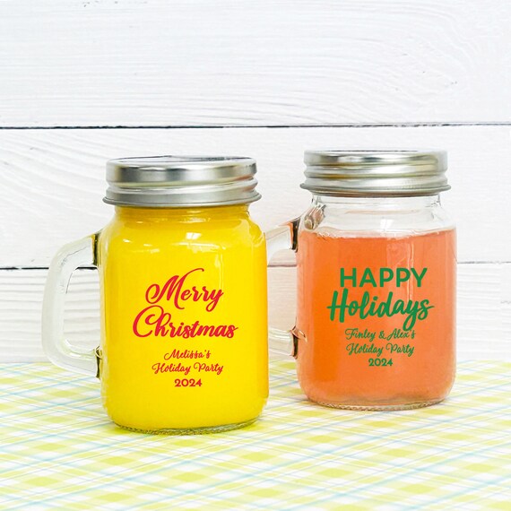 Happy Holidays Favors Set of 24 Personalized Glass Mini Mason
