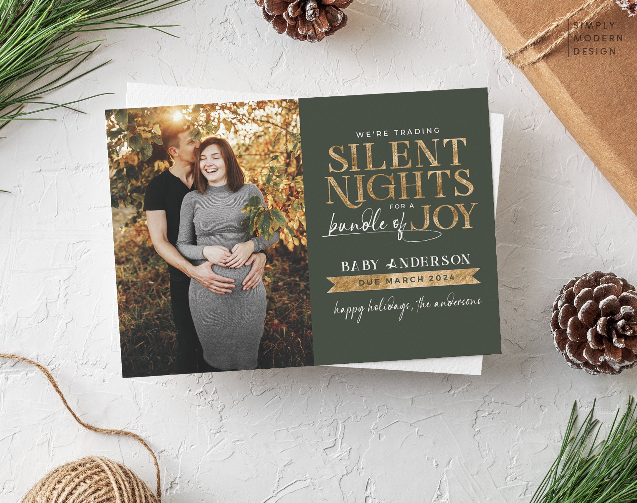 Pregnancy Announcement Christmas Card Gold Foil Trading Etsy Israel